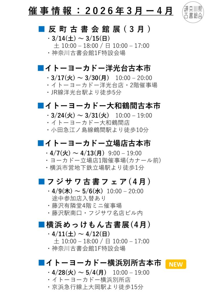 2026年3月から4月の催事・即売会情報
